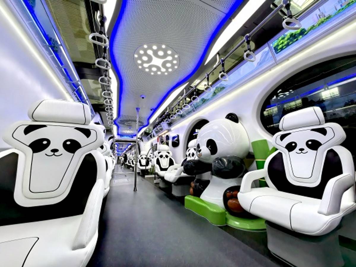 車内の座席などもパンダがデザインされている。【画像:重慶軌道交通】
