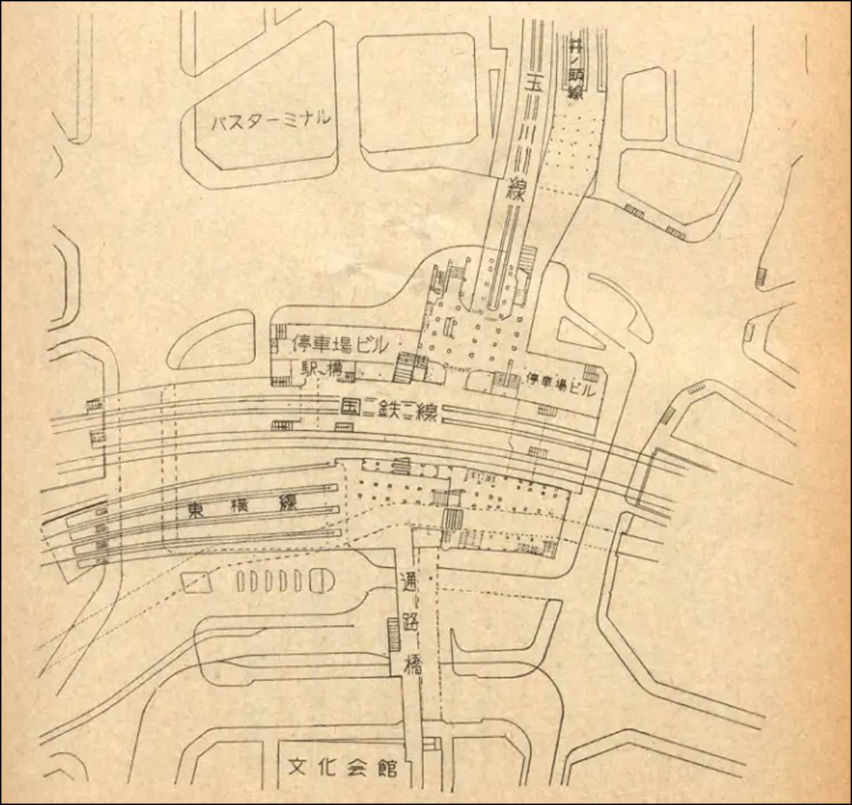 こうしたなか、玉川電気鉄道は国鉄渋谷駅の西側に駅ビルを整備することを計画する。当初の計画では地上7階・地下2階で、2階には玉電のホームを整備。3・4階には東京高速鉄道線が山手線の線路をまたいで乗り入れることになった。
