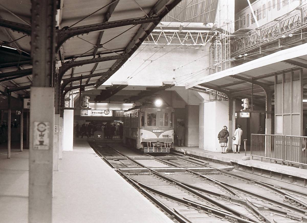路面電車が高架橋を通って駅ビルの2階に乗り入れるというユニークな構造が注目されているが、過去にも駅ビルの2階に乗り入れる路面電車は存在した。東京急行電鉄(現在の東急)が運営していた玉川線、通称「玉電」の渋谷停留場(東京都渋谷区)だ。