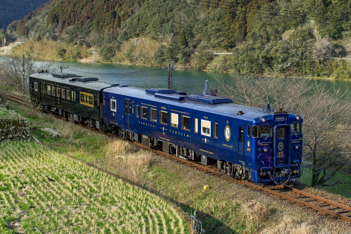 「かわせみ やませみ」はキハ40系気動車のキハ47形2両を改造した観光車両。2017年から2020年まで肥薩線を含む熊本~人吉で特急として運行され、2022年からは豊肥本線の熊本~宮地を結ぶ特急として運行されていたが、今年2025年3月のダイヤ改正で定期運行を終了した。
