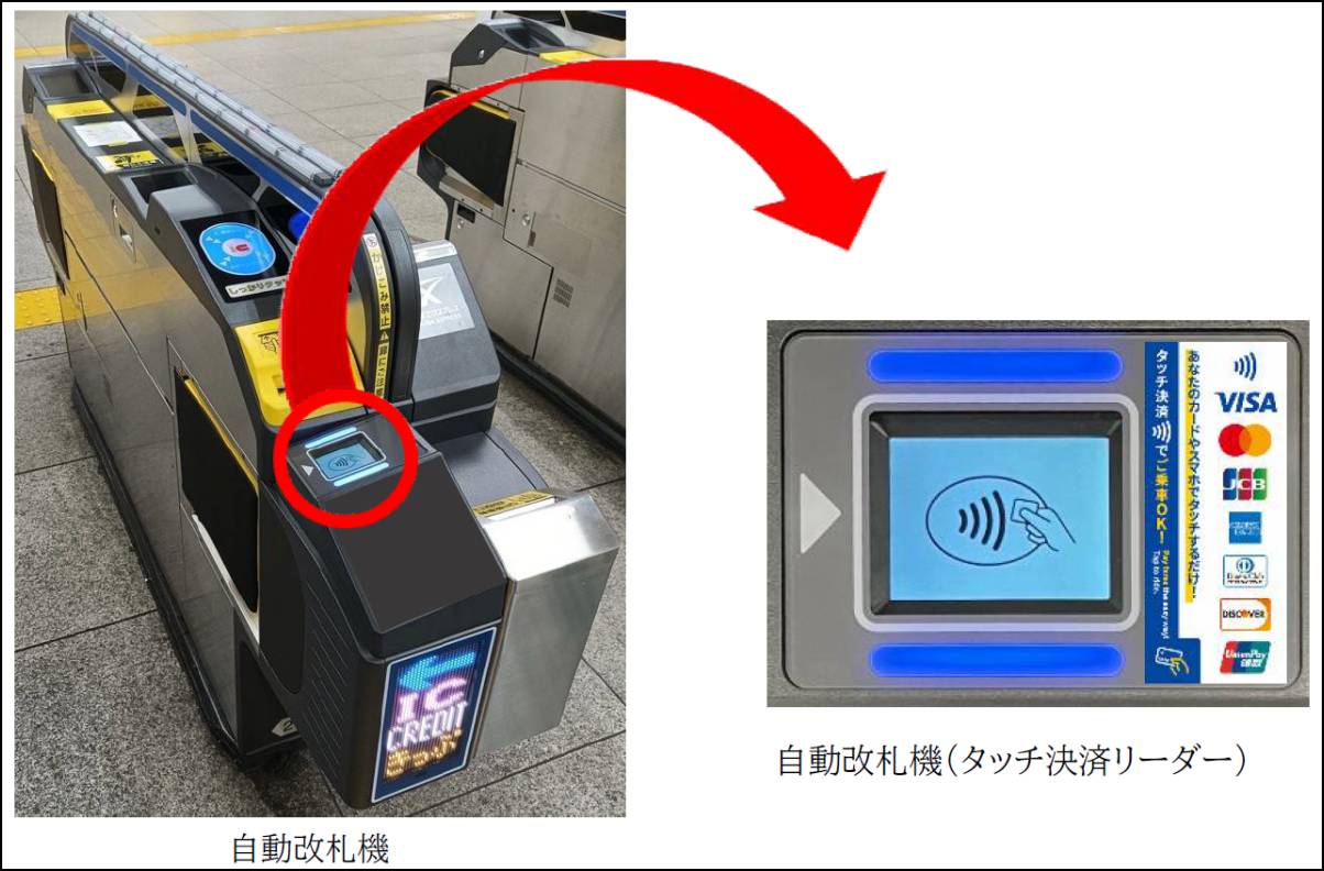 乗車方式は後払い式。タッチ決済に対応したクレジットカードなどを自動改札機の専用リーダーにタッチすることで、そのまま改札を通過して乗車できる。タッチ決済利用時は10円単位運賃が適用される。