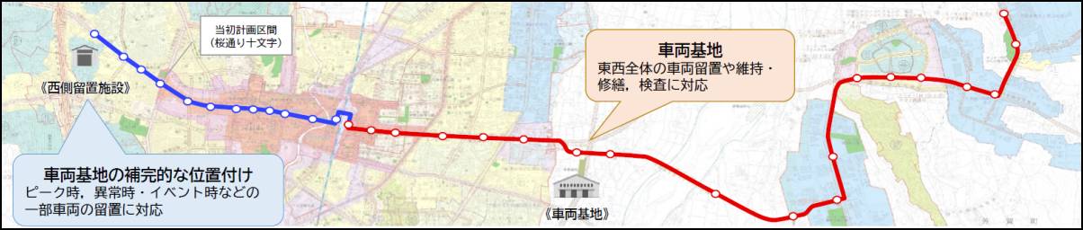 宇都宮市はライトラインの西側延伸について、路線計画・施設計画の検討状況や需要予測などを明らかにした。異常時やイベント時の対応施設として中間停留場の渡り線や車両の留置施設などの整備を新たに盛り込んだが、一方で地下埋設物が東側の既開業区間より多いなど課題も浮き彫りになった。