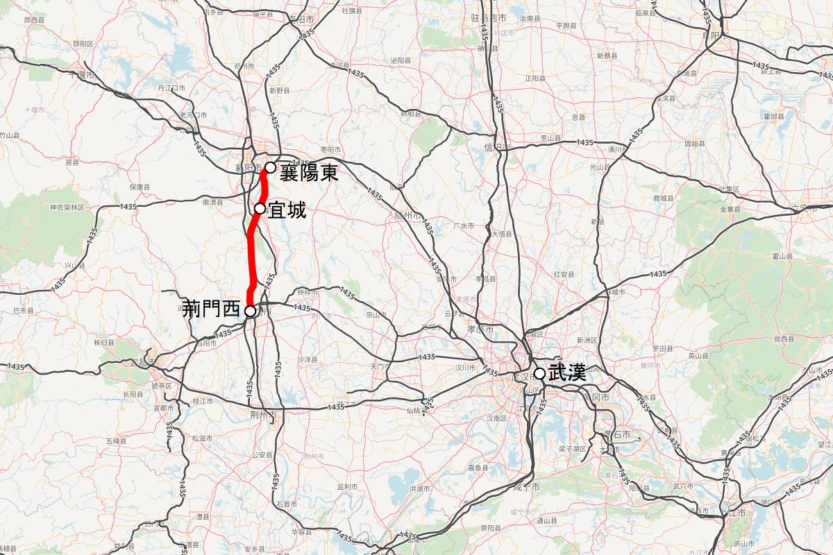 開業したのは襄陽東~荊門西の約116km。中間に宜城駅が設けられた。最高速度は350km/h。襄陽東駅で鄭州方面と重慶方面を結ぶ高速鉄道と接続し、荊門西駅でも上海方面と重慶・成都方面を結ぶ高速鉄道に接続する。これにより湖北省内を循環する高速鉄道の環状ルートができあがった。