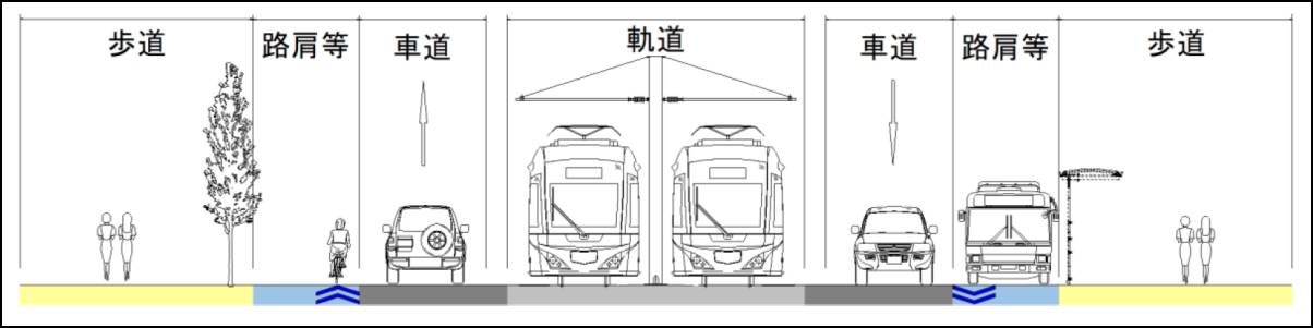 軌道は道路空間の中央に敷設する併用軌道。ただしJR線との立体交差部と宇都宮駅西口近くの田川を渡る部分は高架区間とし、軌道の専用走行区間として橋梁などを整備する。軌道構造は騒音や振動を抑えられる樹脂固定の制振軌道構造を採用。停留場はバリアフリーに対応する。また、終点の教育会館前停留場付近には車両運用を考慮した留置施設や変電所などを整備する。