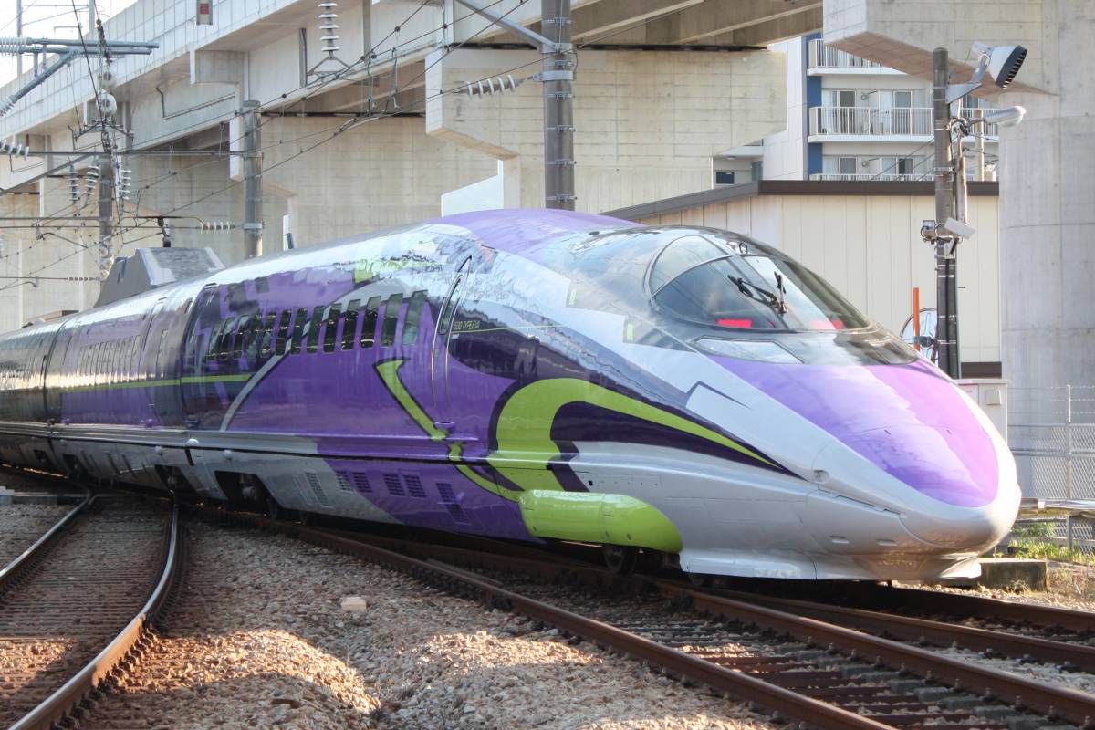 500系のV2編成は「ハローキティ新幹線」の前は「500 TYPE EVA」だった。【撮影:草町義和】