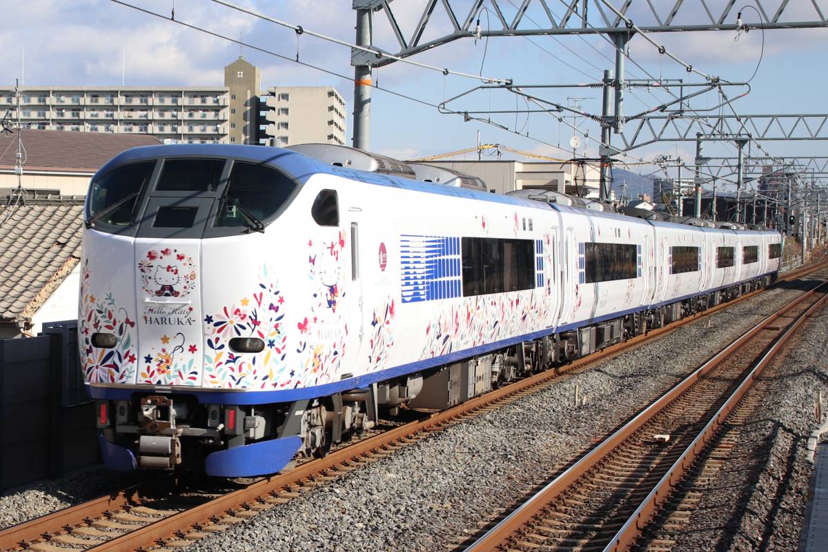「はるか」の「ハローキティ」ラッピング車も2027年夏ごろまでに終了する予定。【撮影:草町義和】