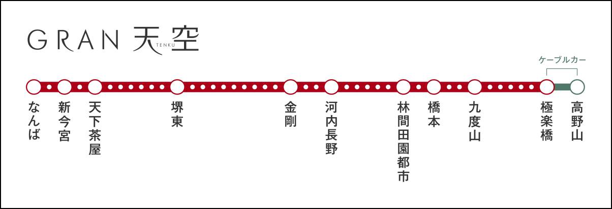 停車駅は、難波・新今宮・天下茶屋・堺東・金剛・河内長野・林間田園都市・橋本・九度山・極楽橋の10駅。