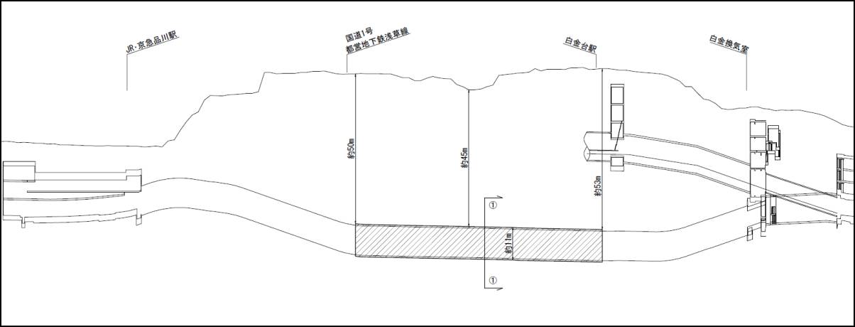 南北線は現在、品川~白金高輪の2.8kmを延伸する事業が進められている。東京メトロが大深度地下法に基づき11月19日に東京都に提出した事業概要書によると、大深度地下の事業区域は東京都港区白金台2・3丁目の約1kmで、地表面からの深さは約45~53mになる。