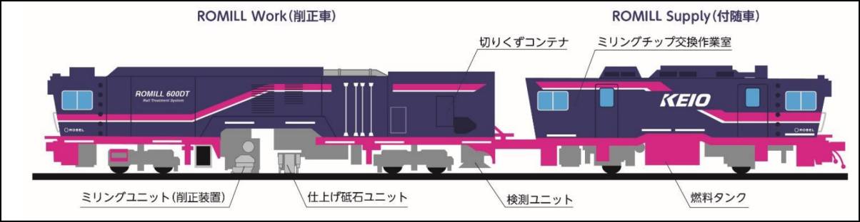 京王電鉄は来年2026年1月から、京王線の全線でROMILL600DTの試験運用を開始する予定。同社は民鉄(JR以外の鉄道)でミリング式レール削正車を導入するのは初めてとしている。