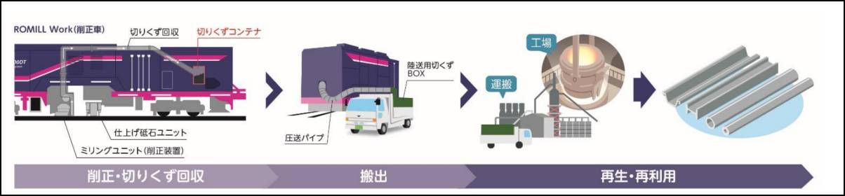 ミリング式は片道1回の走行で特定の場所を削正することが可能。安全性の向上に加え、レールの延命化などにも効果がある。これによりレールの交換量を3割以上減らせる見込みで、保線作業の省力化による負担軽減も図られるという。