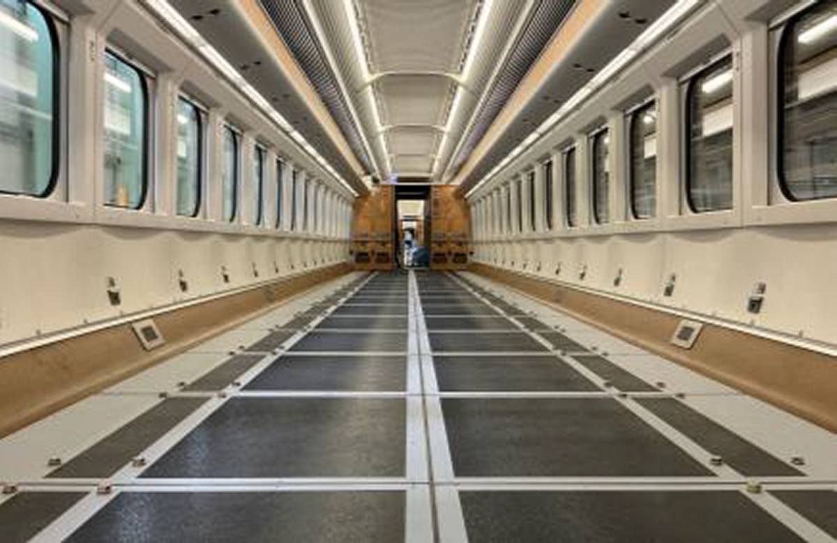 今回導入される荷物専用新幹線は、従来の客室を活用した大口輸送サービスを発展させたもの。座席をすべて撤去して床面をフラット化した車内に、カゴ台車ごと荷物を積載できる構造にする。最大積載量は約17.4トン(1000箱分)。