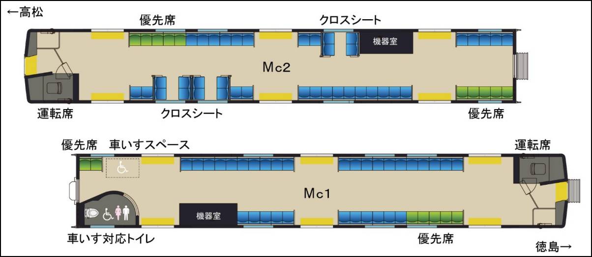 量産先行車は4両(2両2編成)で、徳島運転所に配置する。2026年1月から性能確認などの走行試験を実施。6月の営業運転を目指して乗務員の教育や訓練などを行う。量産車は2027年度から順次導入の予定で、最終的には量産先行車を含む70両(35編成)を製作する計画だ。