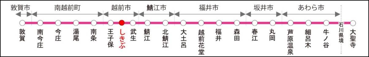 しきぶ駅は王子保~武生の中間に設けられる。【画像:ハピラインふくい】