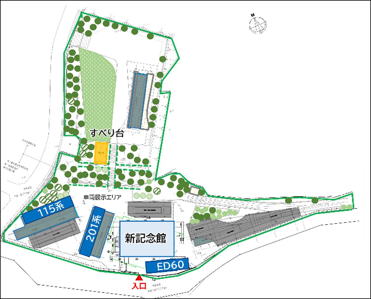 閉園前の展示車両は10両だったが、これに3両を加えて13両に。すべての車両は屋根がある場所で静態展示する。新たに展示される車両は、201系電車(先頭車のクハ201-1)とED60形電気機関車、115系電車の先頭車。いずれも中央線・中央本線で運用されたことがある形式だ。