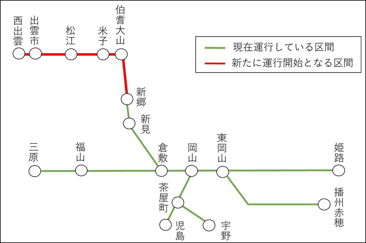 来年2026年3月14日のダイヤ改正にあわせ、伯備線・新郷駅~伯耆大山と山陰本線・伯耆大山~西出雲でも運行されるようになる。
