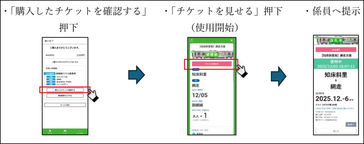 ウェルネットのチケット販売プラットフォーム「アルタイルトリプルスタークラウド」を使用して発売。駅に掲示するポスターのQRコードをスマートフォンで読み取り、画面上で会員登録や降車駅選択などの操作を行うと購入できる。支払い方法はクレジットカードのみ。乗車時はスマホ画面に切符の券面を表示させ、係員に提示する。