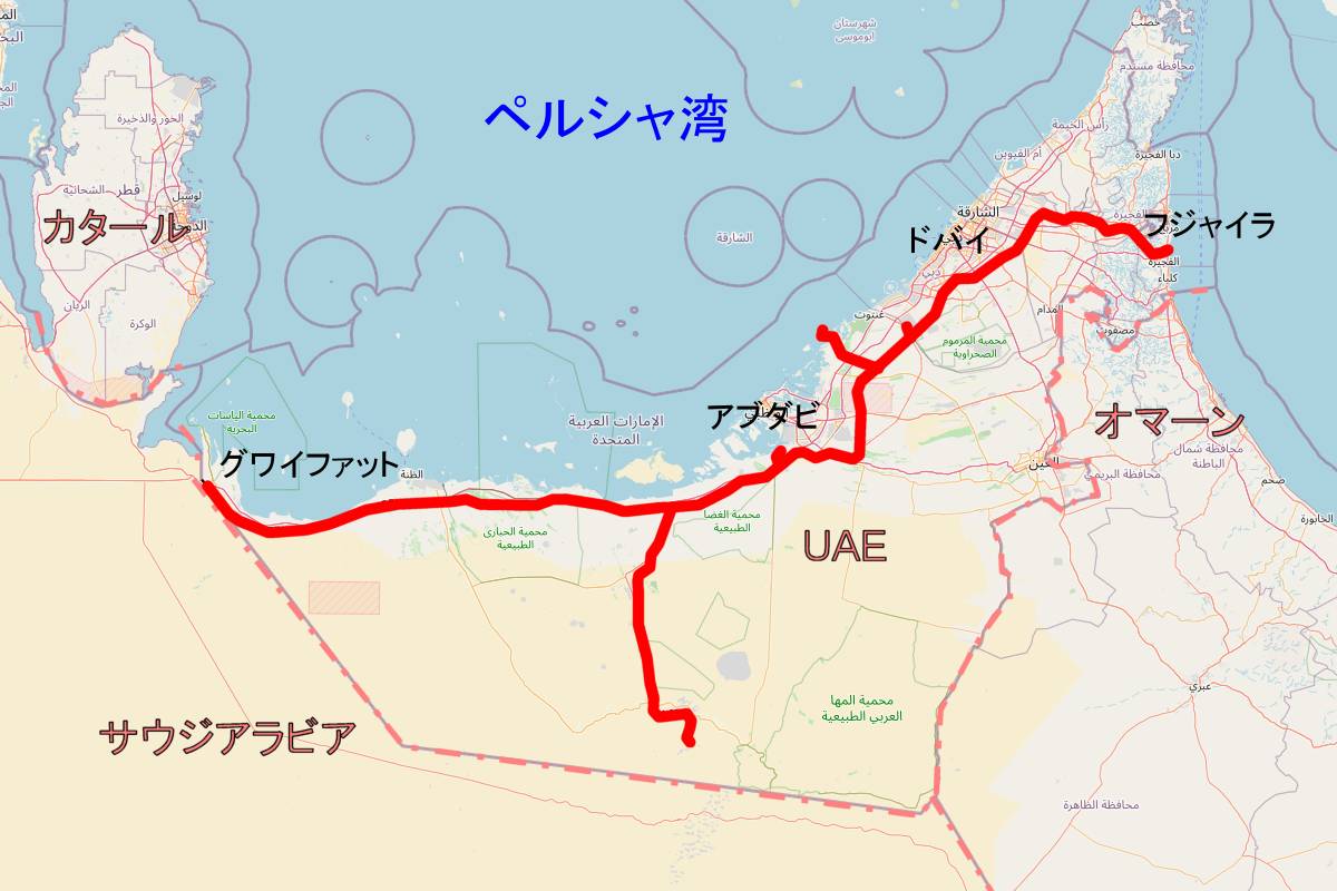 エティハド鉄道は全長約900kmのネットワークを持つ鉄道事業者。2016年に一部開業し、2023年にはサウジアラビア国境付近のグワイファットからフジャイラに至る東西横断ルートが開業した。軌間は1435mmの標準軌。現在は貨物列車のみ運行している。
