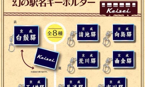 催事・商品京成電鉄は11月7日、「京成線 幻の駅名キーホルダーガチャ」と題したカプセルトイ自販機を京成曳舟・八広・京成高砂の3駅に設置した。京成線の開業110周年を記念したもの。 キーホルダーは全8種で「請地」「向島」「荒川」「曲…